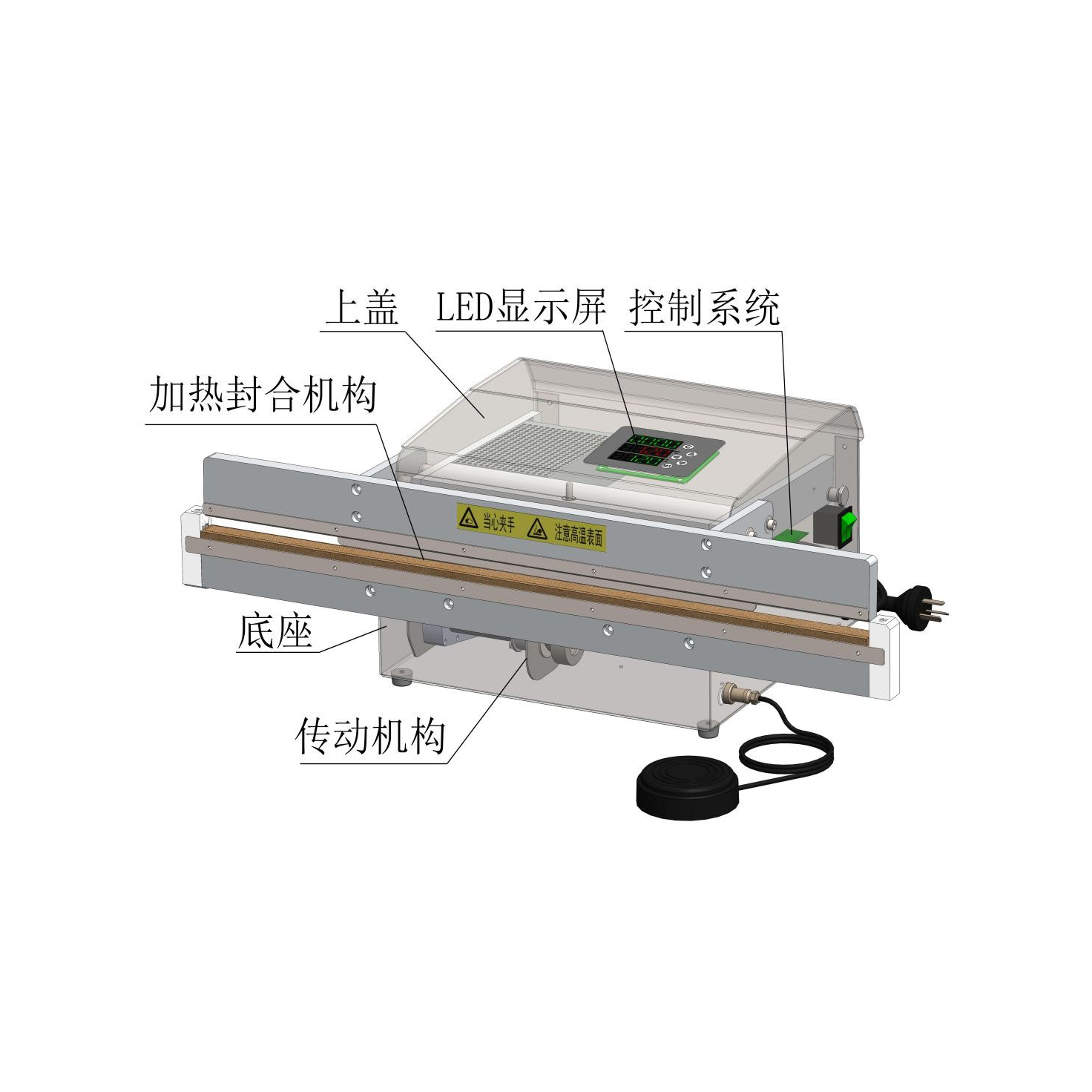1、該系列封口機設備集 封口 冷卻等多種功能為一體,采用全自動微電腦控制,控溫準確,工作溫度在100~200C可調,具有自動壓合系統,壓緊力可調整;